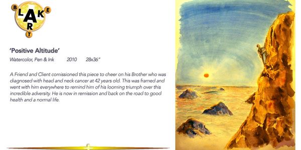 A Friend and Client comissioned this piece to cheer on his Brother who was diagnosed with head and neck cancer at 42 years old. This was framed and went with him everywhere to remind him of his looming triumph over this incredible adversity. He is now in remission and back on the road to good health and a normal life.