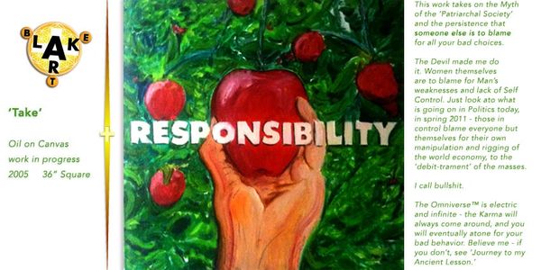This work takes on the Myth of the ‘Patriarchal Society’ and the persistence that someone else is to blame for all your bad choices. • The Devil made me do it. Women themselves are to blame for Man’s weaknesses and lack of Self Control. Just look at what is going on in Politics today, in spring 2020 - those in control blame everyone but themselves for their own manipulation and rigging of the world economy, to the ‘debit-trament’ of the masses. • I call bullshit. The Omniverse™ is electric and infinite - the Karma will always come around, and you will eventually atone for your bad behavior. Believe me - if you don’t, see ‘Journey to my Ancient Lesson.’